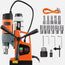 - Understand the Power: 12500N of robust force is created by the electromagnetic thickened base, featuring pure iron anchors the mag drill press solidly works at any angle stably during the drilling process. Equipped 11pcs drill bits can meet your various boring needs for a wide range of hole diameters.
